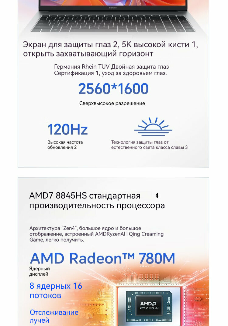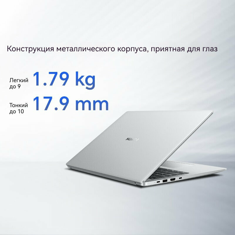 Технология защиты глаз: Дисплей прошел сертификацию TÜV Rheinland на низкий уровень синего освещения и отсутствие стробоскопа. Дисплей оснащен технологией Honor “защита глаз от естественного света”, разработанной компанией Honor самостоятельно, которая снижает вред, наносимый глазам при длительном использовании компьютера, и эффективно снимает усталость глаз.