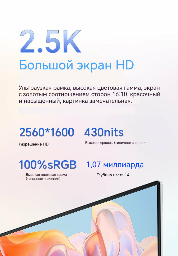 Расширенные интерфейсы: оснащен интерфейсом USB4 (20 Гбит/ с), полнофункциональным интерфейсом USB-C, двойным интерфейсом USB-A 3.2 Gen1, интерфейсом HDMI и 3,5-мм микрофоном для наушников "два в одном" и другими расширенными интерфейсами для удовлетворения потребностей пользователей в передаче данных, быстрой зарядке и расширении возможностей подключения.