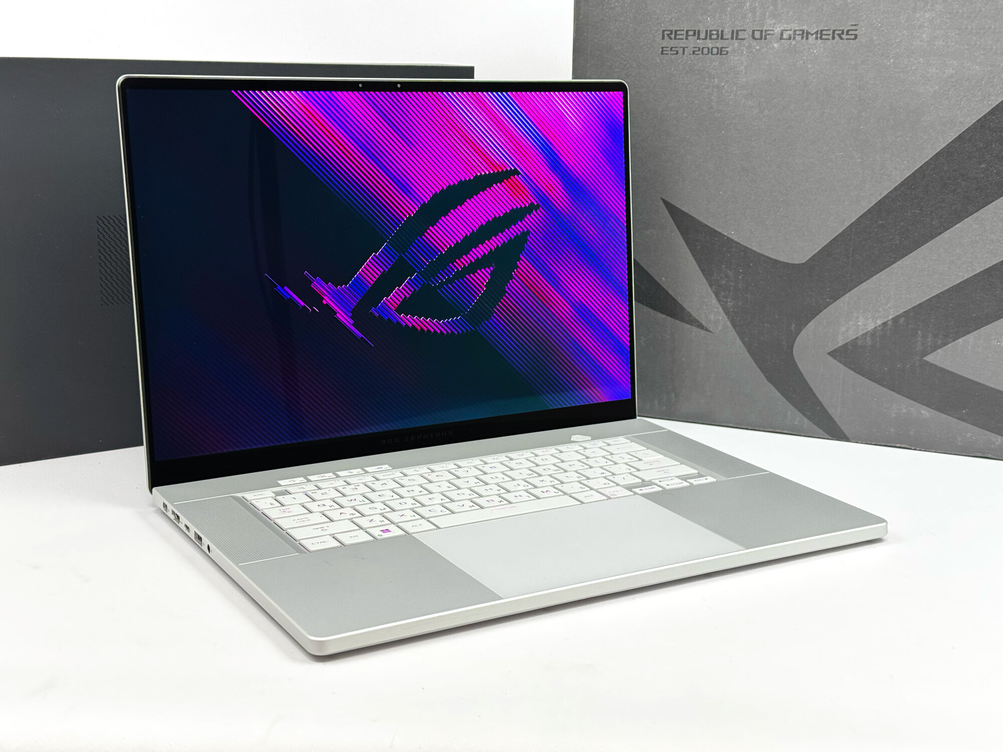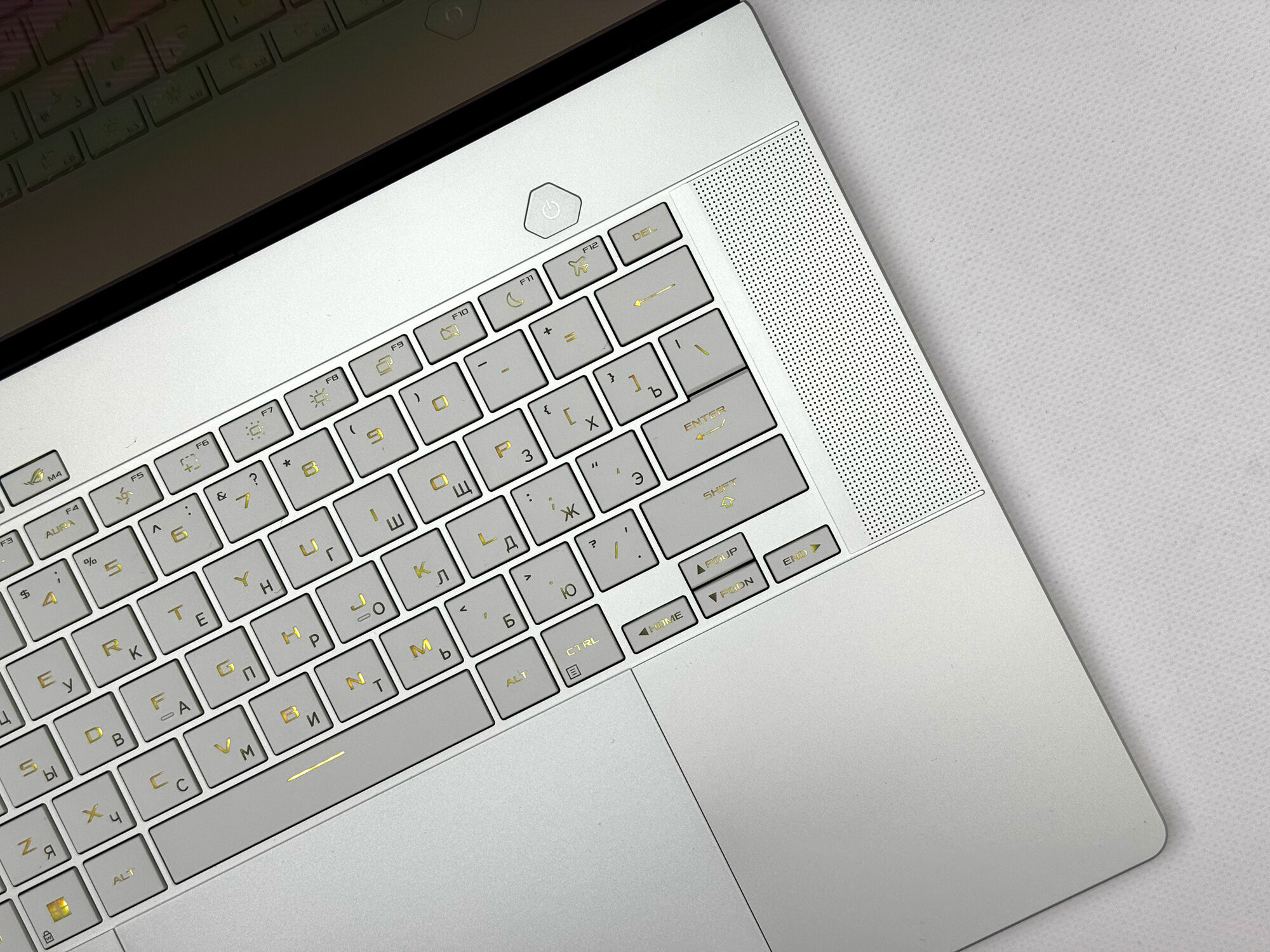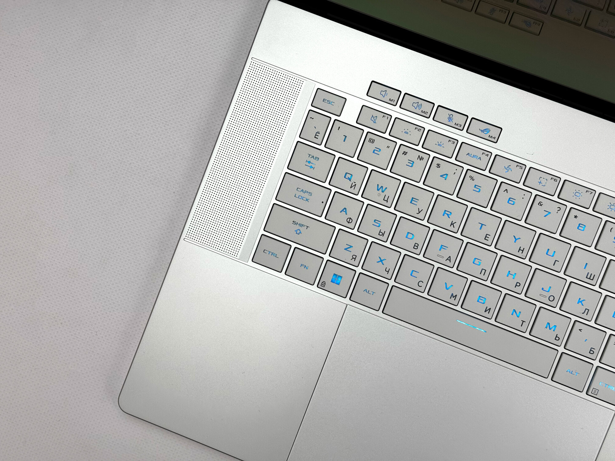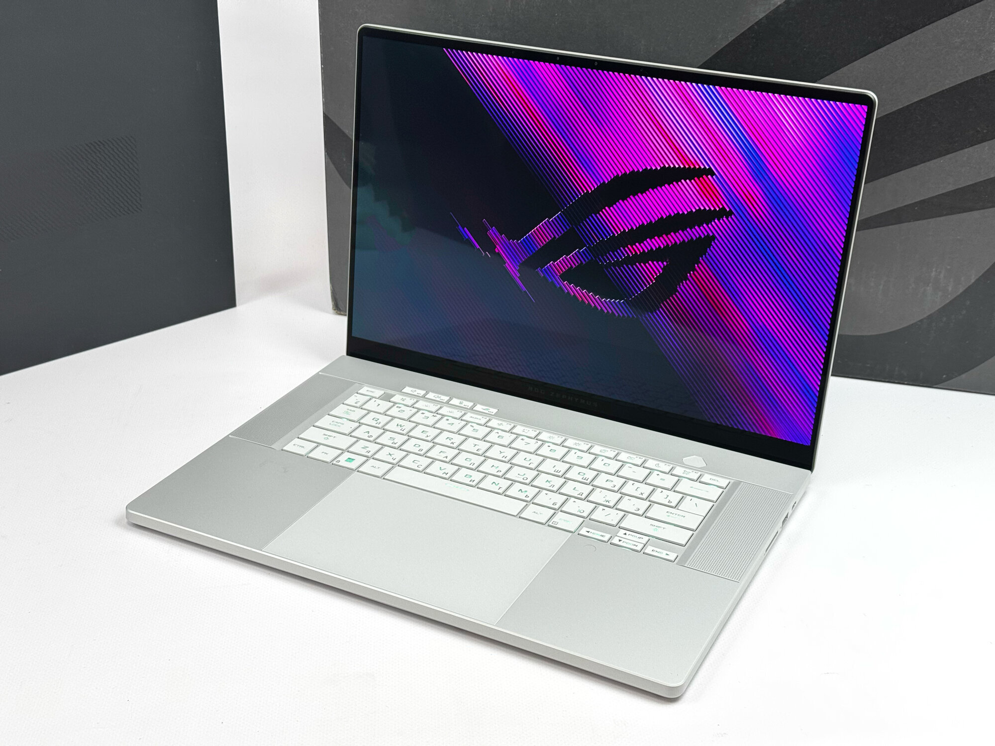 Клавиатура ноутбука ASUS ROG Zephyrus имеет русскую и английскую раскладку, что делает его удобным для использования как в России, так и в других странах.