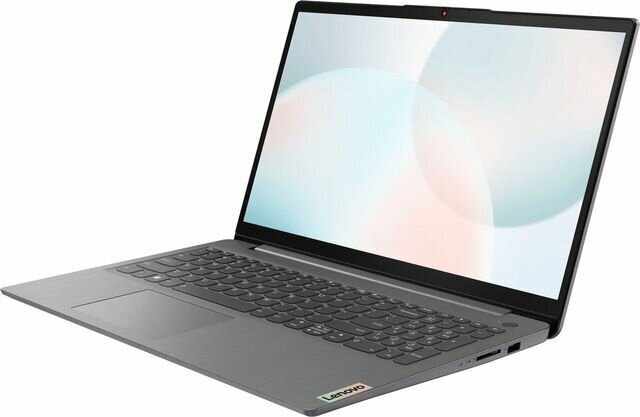 Корпус ноутбука выполнен из металла и пластика, имеет матовое покрытие и серый цвет Luna grey.